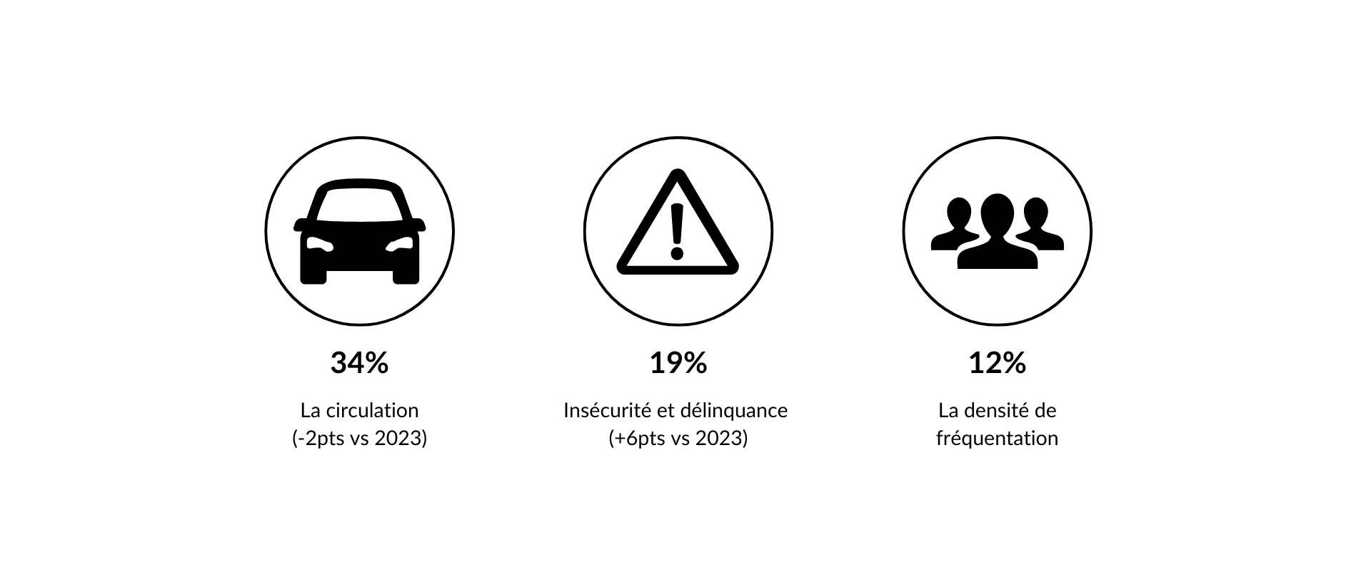 La perception de nuisances progresse quant à elle depuis 2023 sur les difficultés de circulation, l’insécurité et la densité de fréquentation.